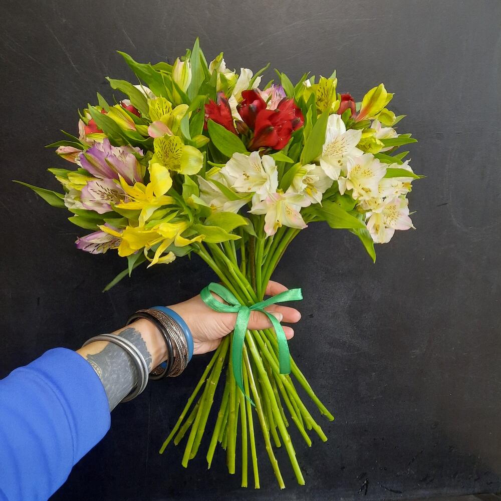 Лента атласная – 2 шт.альстромерия микс – 27 шт.