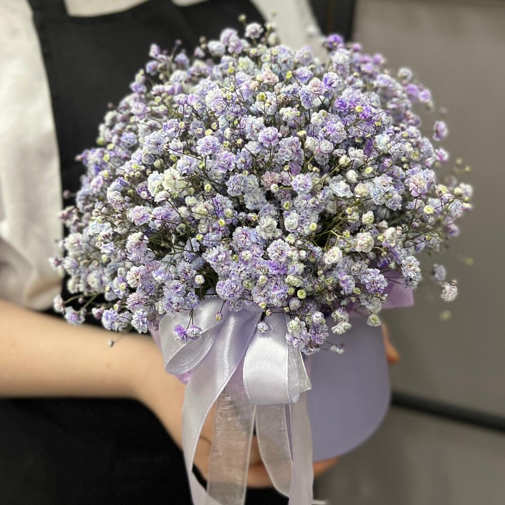 Гипсофила – 5 шт.Лента атласная – 2 шт.Оазис флористический – 1 шт.Шляпная коробка – 1 шт.