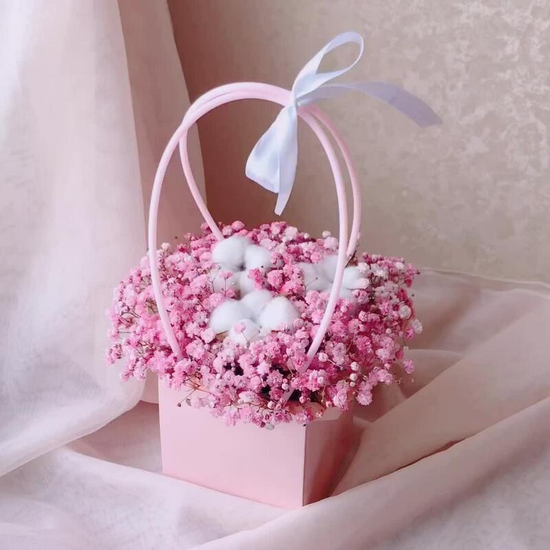 Очаровательная композиция из изысканных свежих цветов.Наполнена множеством соцветий розовой гипсофилы и мягкого хлопка. Собрана в стильной сумочке.Композиция из гипсофилы – необычный подарок, который удивит своей невероятной стойкостью, при правильном и простом уходе.❤️ Ставить композицию в прохладном месте, избегая отопительных приборов и прямых солнечных лучей. ❤️ Подливать немного воды в серединку.Гипсофила не вянет, а становится сухоцветом, сохраняя свой вид. Поэтому композиция продолжит радовать ещё очень долго!Чтобы защитить готовый букет во время доставки от любых погодных условий, мы бережно его упаковываем