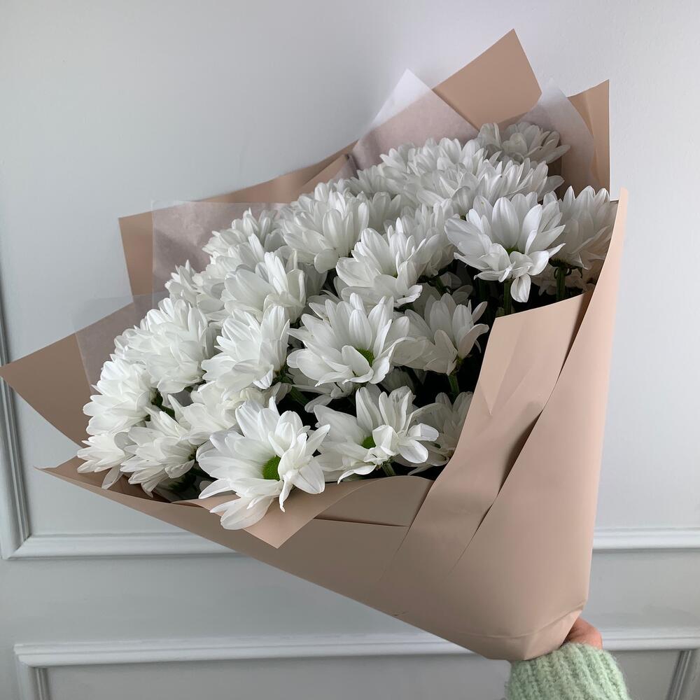 Лента – 1 шт.Хризантема кустовая – 7 шт.Пленка матовая – 1 шт.