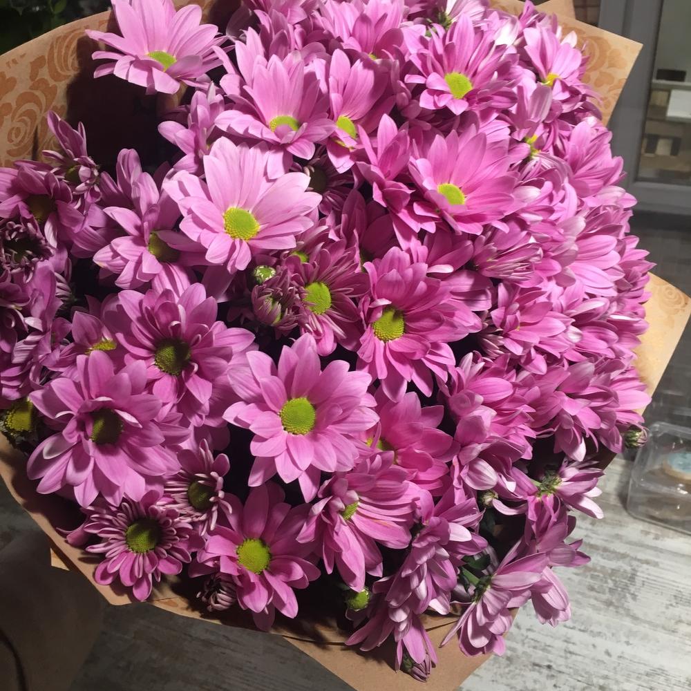 Кустовая хризантема – 11 шт.Лента атласная – 1 шт.Крафт упаковка – 1 шт.