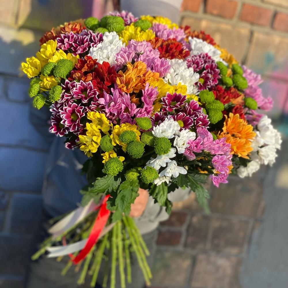 Хризантема кустовая – 35 шт.Лента атласная – 1 шт.
