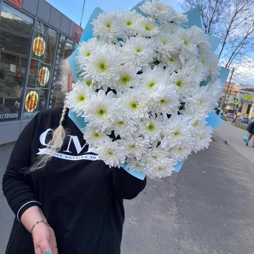 Лента – 1 шт.Хризантема кустовая – 7 шт.бумага дизайнерская – 1 шт.