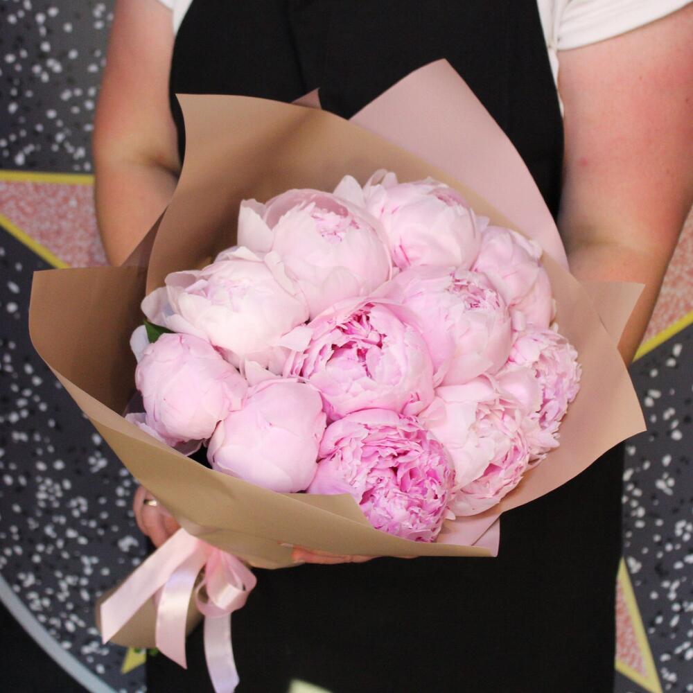 Лента атласная – 1 шт.Пион Сара Бернар – 11 шт.Пленка дизайнерская – 3 шт.