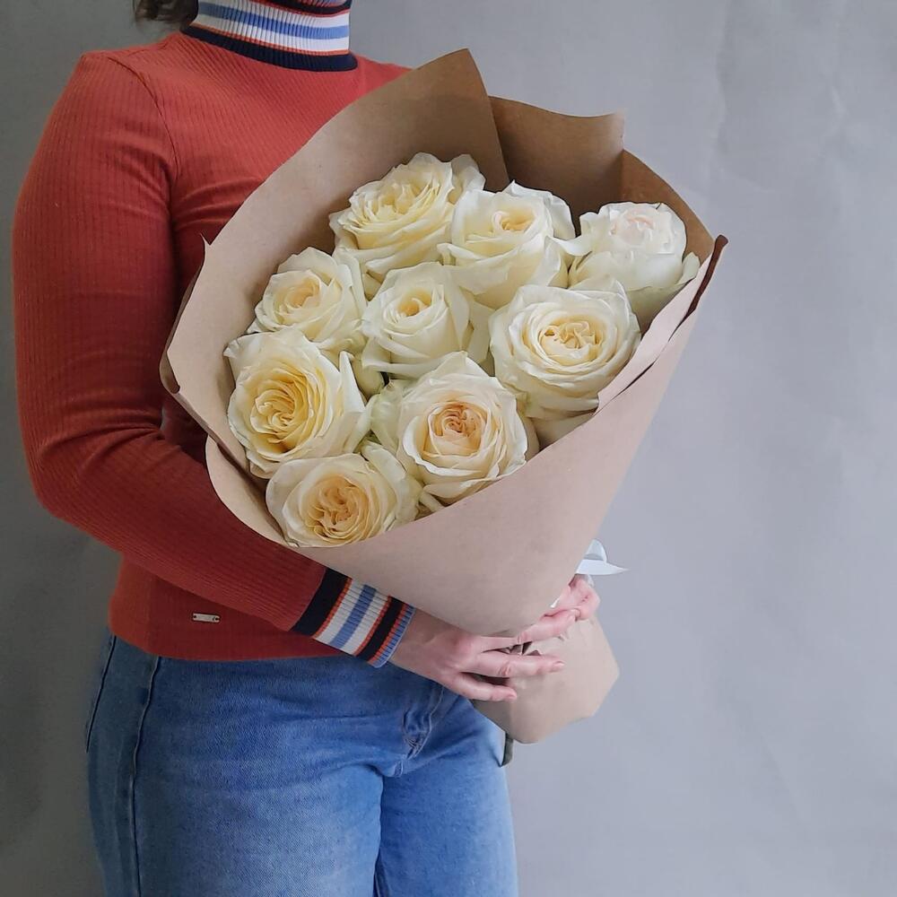 роза канделайт – 9 шт.Упаковка крафт – 1 шт.Лента атласная – 1 шт.