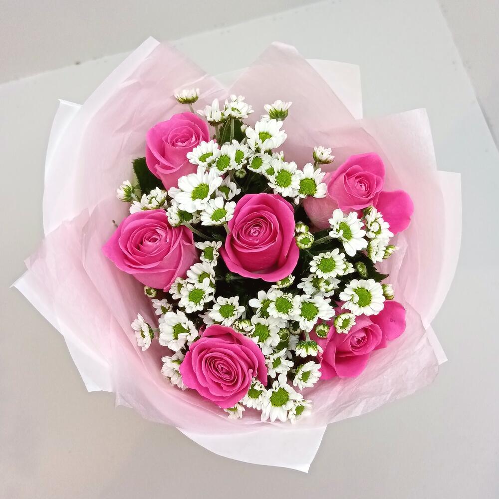 роза кения – 6 шт.Хризантема кустовая Сантини – 3 шт.
