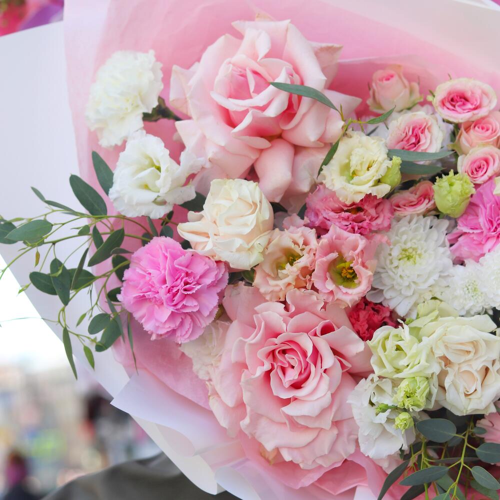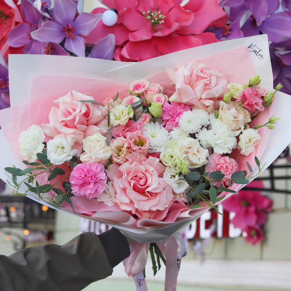 Категорий: Гвоздики, Кустовые розы, Лизиантусы, Пионовидные розы, Розы, Хризантемы
