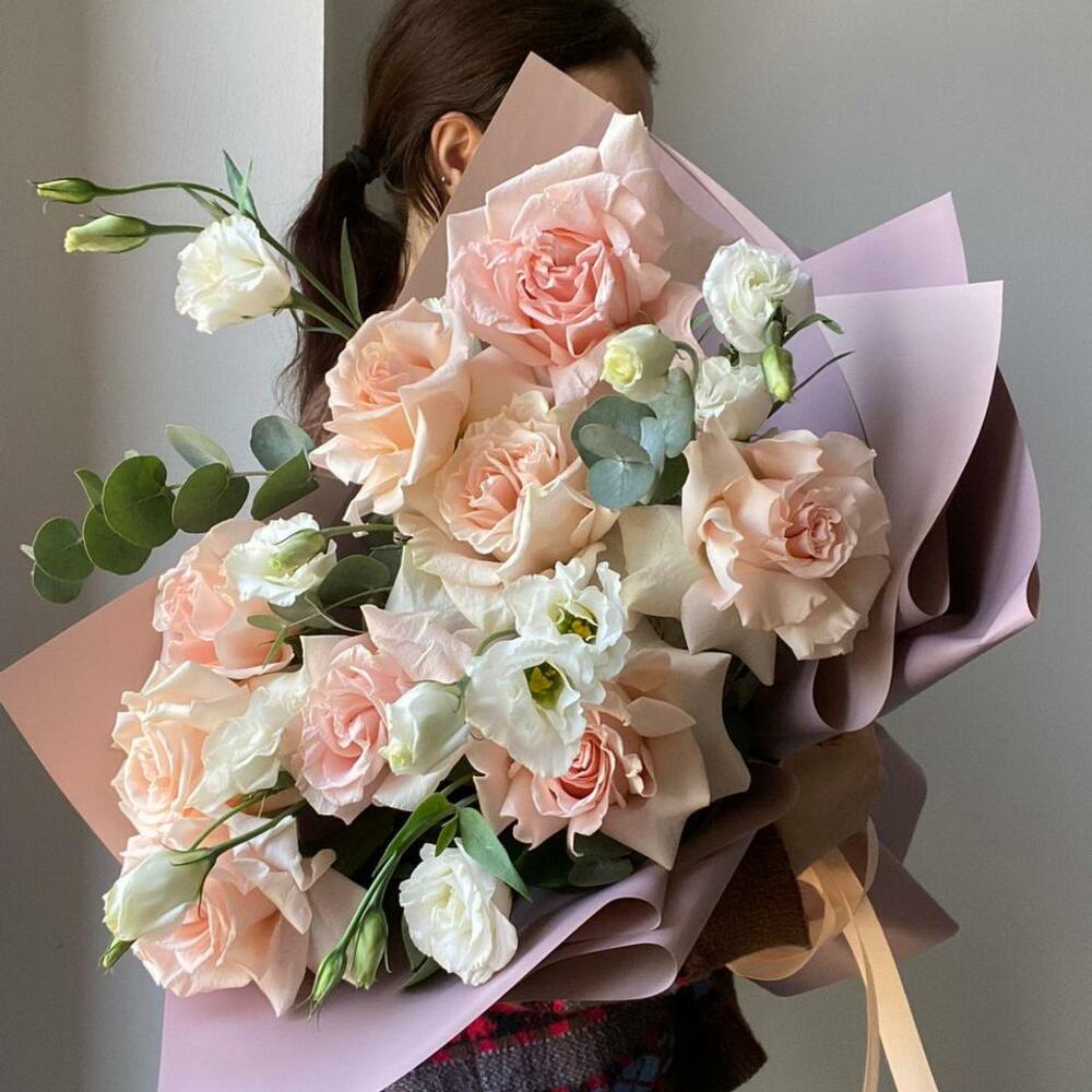 Гвоздики, Кустовые розы, Лизиантусы, Пионовидные розы, Розы