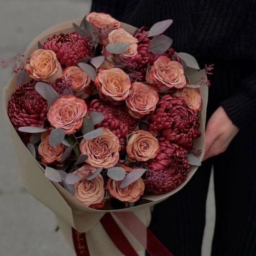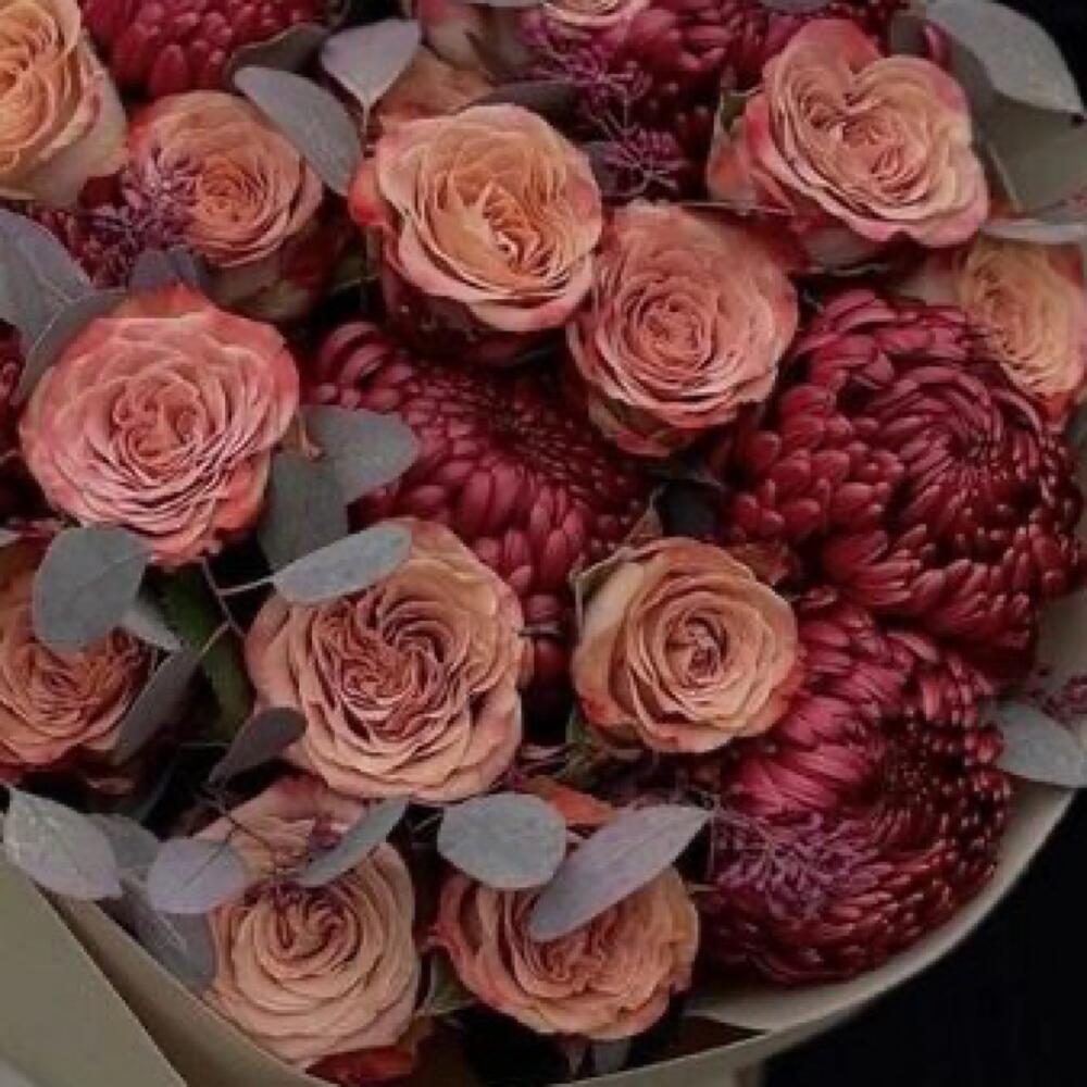 Кустовые розы, Пионовидные розы, Розы, Сухоцвет, Тюльпаны