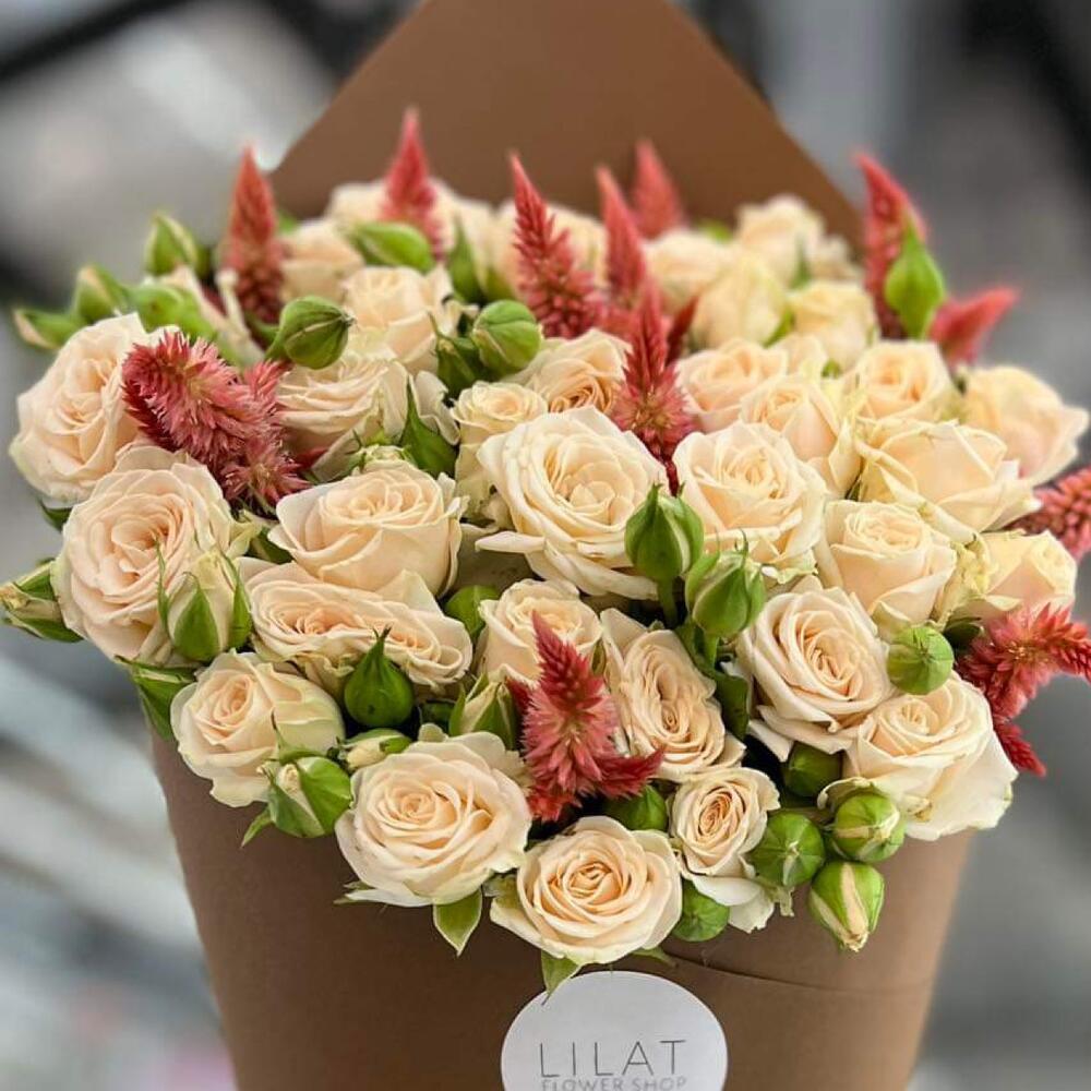Кустовые розы, Лизиантусы, Пионы, Розы, Хризантемы