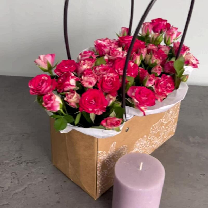 Кустовая роза – 3 шт.Оазис – 1 шт.Коробка – 1 шт.Тишью белое – 1 шт.