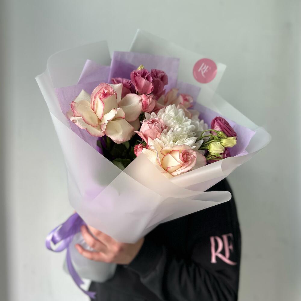 Гвоздики, Кустовые розы, Пионовидные розы, Розы