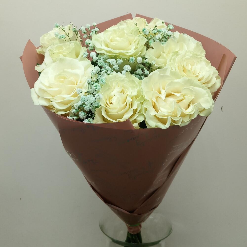 Роза эквадор 80 см – 9 шт.Гипсофила – 1 шт.Упаковка – 1 шт.