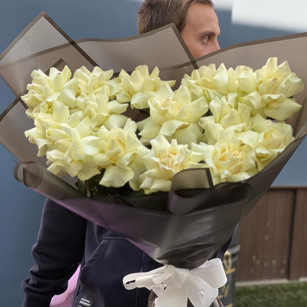 Роскошный букет из белоснежных роз Black edition