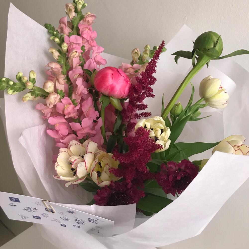 Пион – 2 шт.тюльпан кустовой фермерский – 4 шт.антиринум – 4 шт.Астильба – 3 шт.Скабиоза – 2 шт.